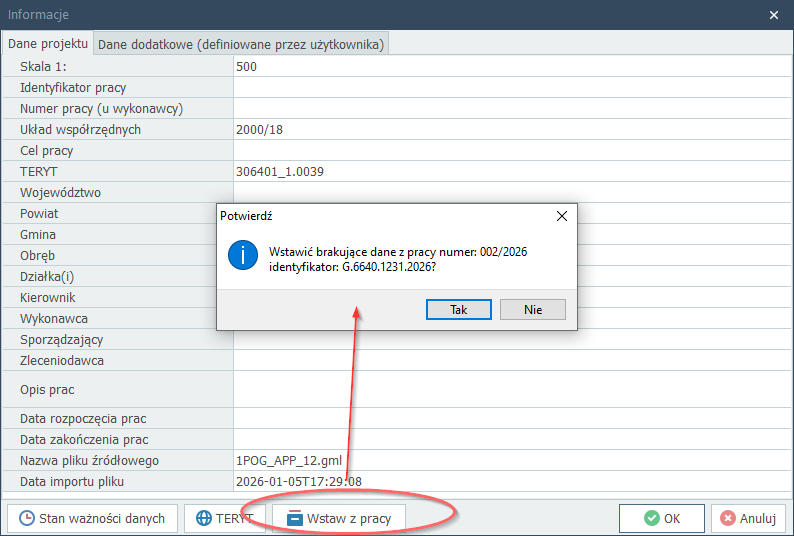 Dane z pracy można szybko kopiować do projektów programu Mapa.m6 (do plików .mm6) w oknie "Informacje":