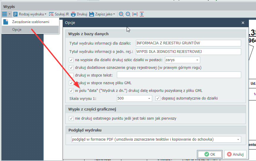 Datę "Stan na dzień" możemy umieścić na wydruku informacji dla działki w tym miejscu: