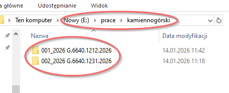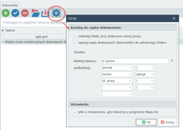 W przypadku powyższego zrzutu, każdy dodawany plik zostanie skopiowany do folderu e:\prace\nazwa_powiatu\numer_pracy identyfikator_pracy: