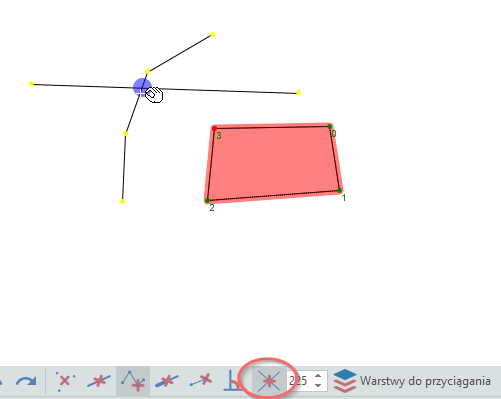 • kropka czerwona - przyciągnięcie do punktu